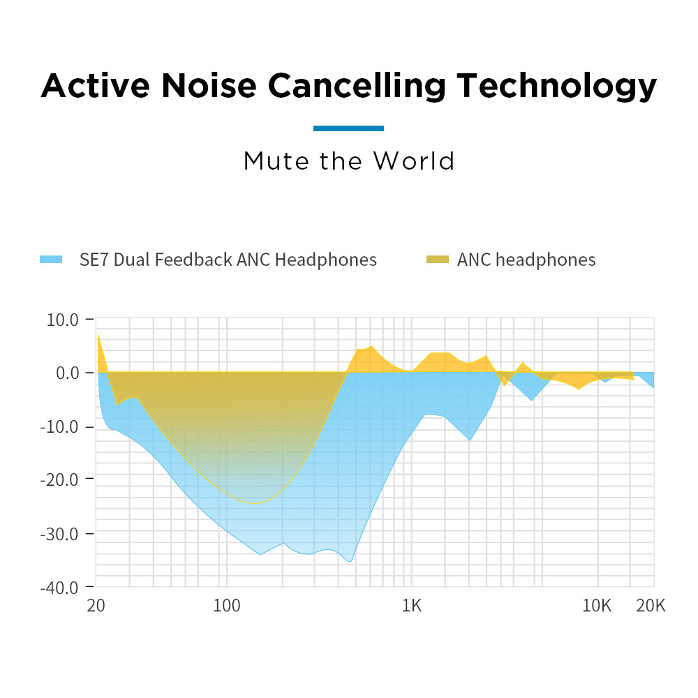 SE7 Dual Feedback Active Noise Cancelling Bluetooth Headphones