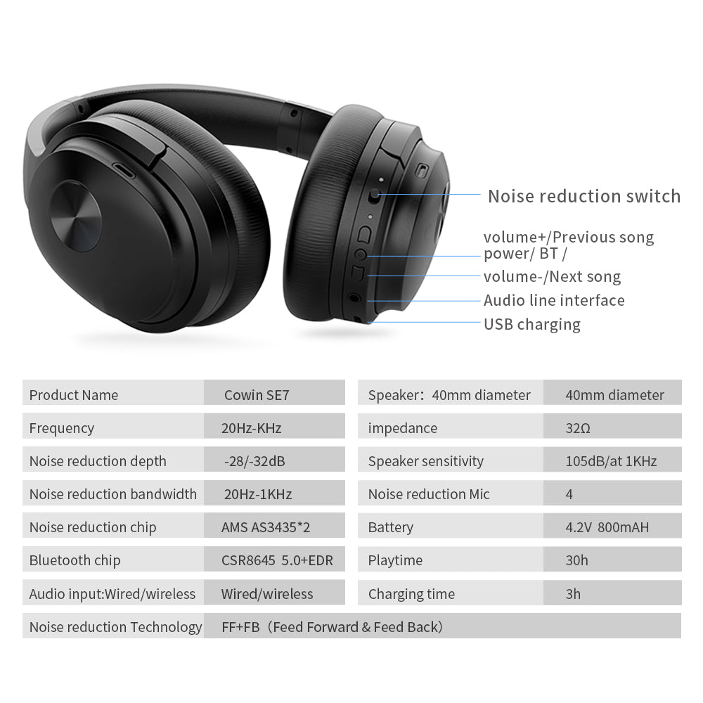 < img src="https://s.amazon-adsystem.com/iu3?pid=2bdbe26e-48df-4165-b3a9-1cdc759d776f&event=PageView" width="1" height="1" border="0"> COWIN SE7 | Dual Active Noise Cancelling Wireless Bluetooth Headphones - Cowinaudio