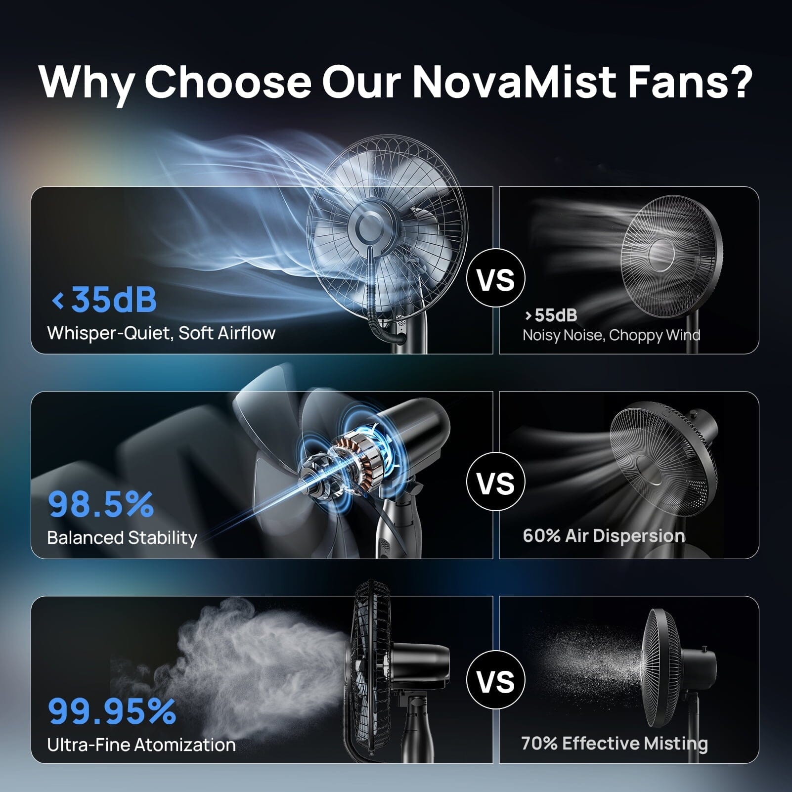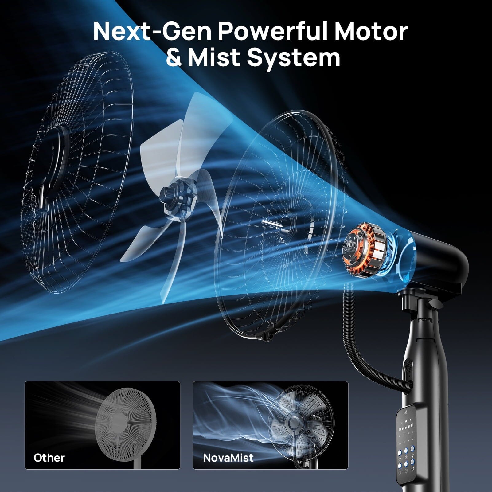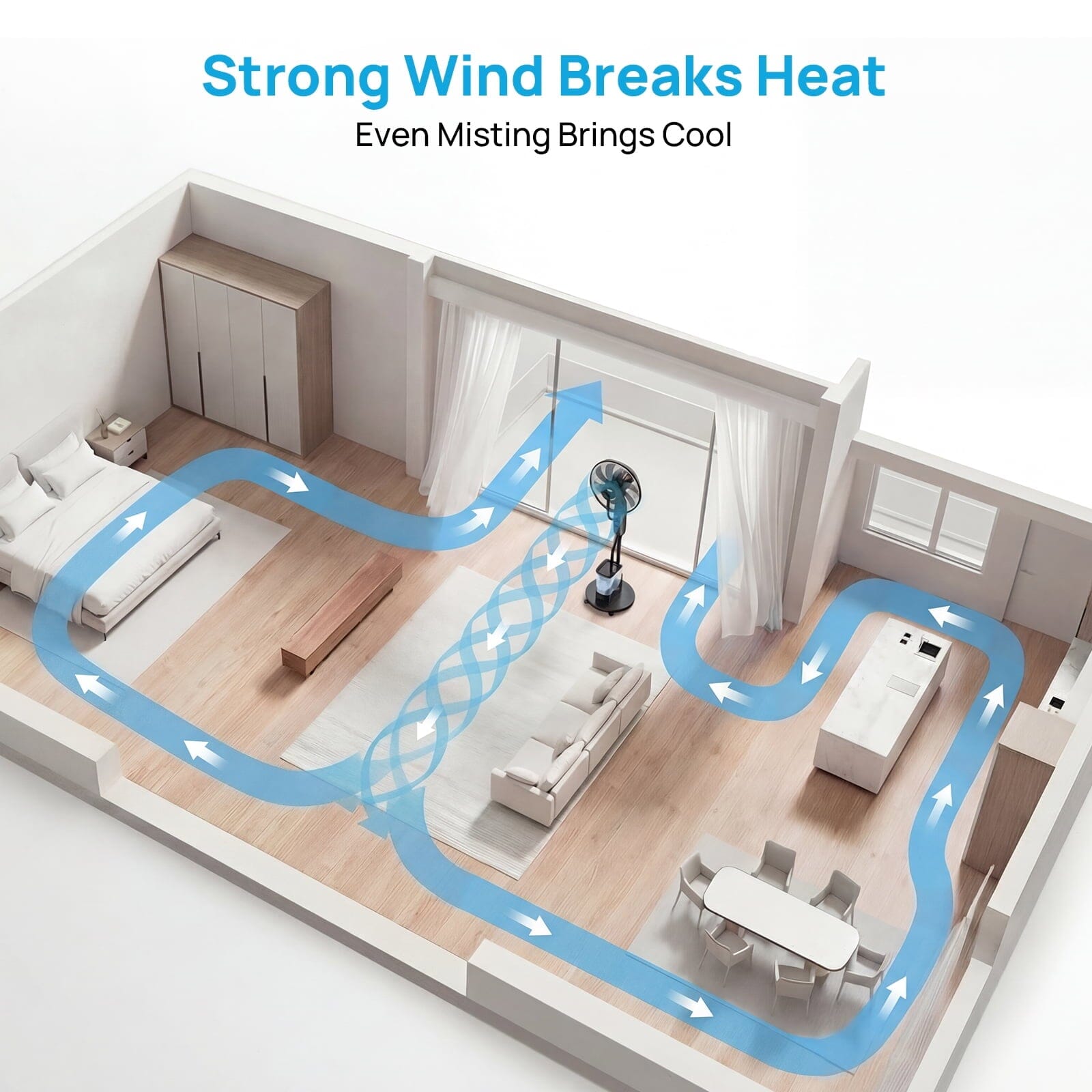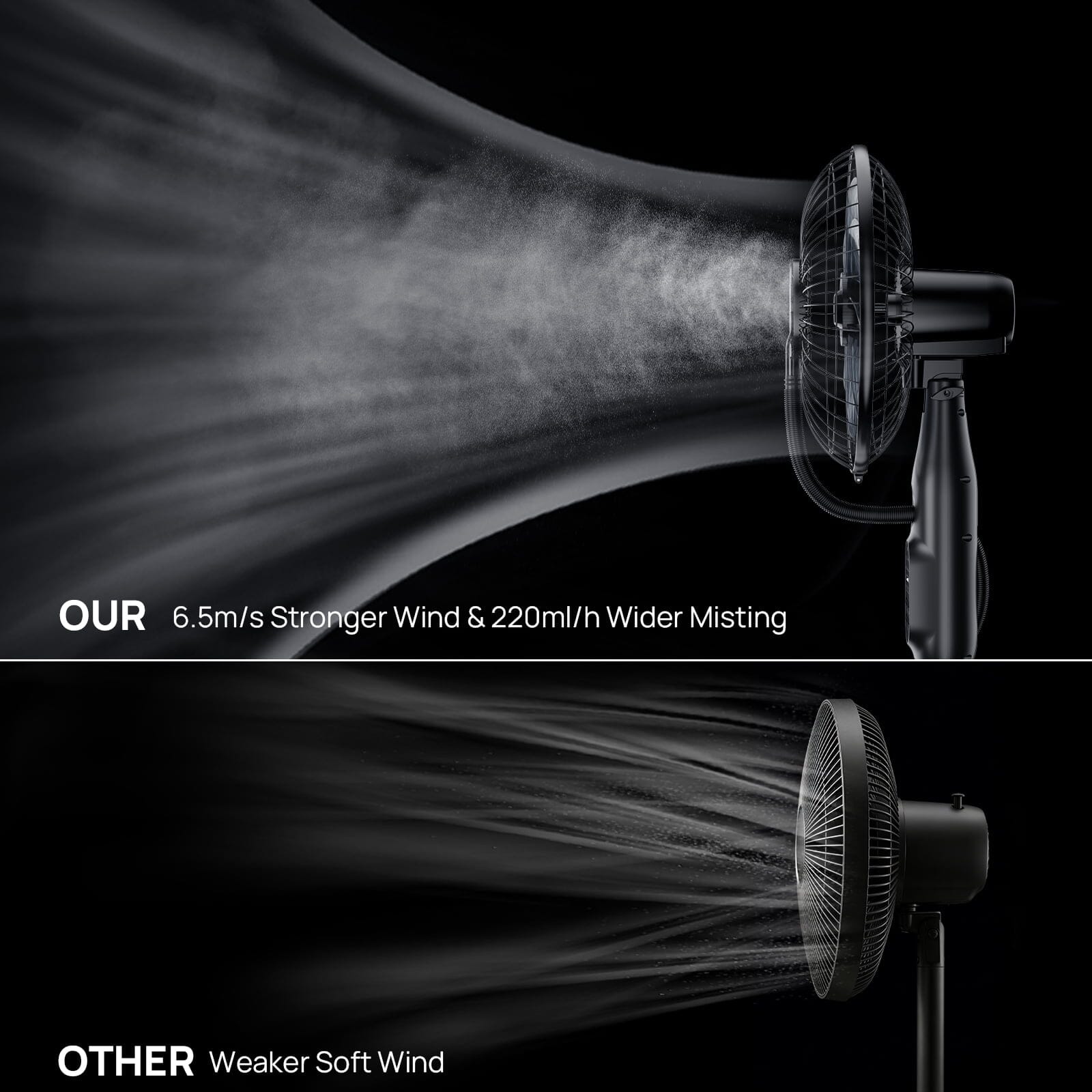 Product details The Pedestal Misting Fan, its 70° side-to-side swing and 15° vertical tilt deliver refreshing airflow and fine mist to every corner of your...